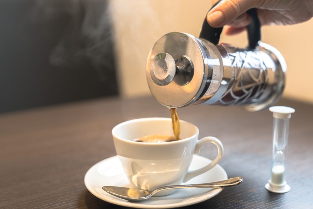 このプレス式のコーヒーの提供方法に変えてから、お客様の評価は高くなり、「砂時計が落ちるまで待っている間も楽しい!」「他所で見ない淹れ方でワクワクする!」など見た目的にも評価が良いようです。
